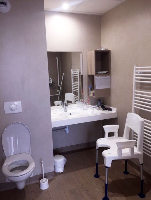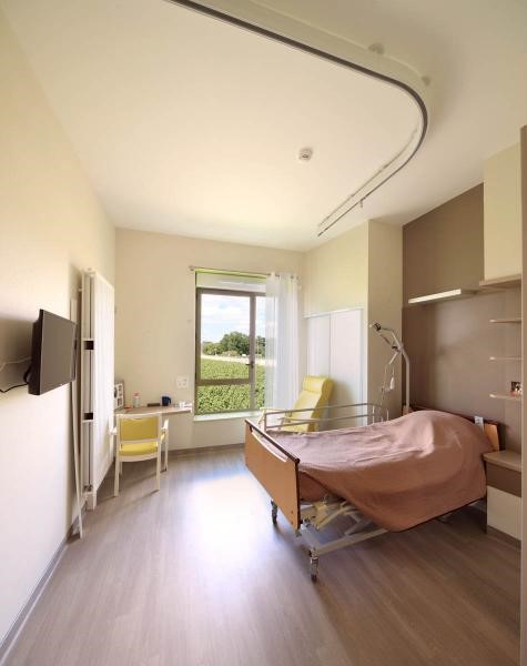 Vous serez accueilli en chambre individuelle. Chacune est équipée d’un salle de bain privative avec douche et d’un rail au plafond pour faciliter la mobilisation. Elles sont meublées d’un mobilier adapté répondant aux exigences de confort et de sécurité. Votre chambre est votre espace privatif et nous vous encourageons vivement à l’agrémenter en apportant vos objets personnels (bibelots, photos…) qui resteront votre propriété, afin de vous sentir chez vous. Une télévision murale 32" est installée dans la chambre. Un téléphone à grosses touches est également mis à disposition. L’ouverture d’une ligne téléphone se fait par l’intermédiaire du service administratif. L’abonnement est facturé 15€ par mois.