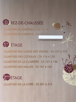 Les unités d’hébergement EHPAD se situent au RDC et 1er étage répartis en quartier d’habitation dénommés « quartiers du château, de l’abbaye, des halles, de la clairière, des coteaux ou des loges de vignes ».
