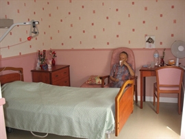 Chaque chambre comprend un cabinet de toilette (lavabo, w. c.) et est dotée du mobilier de base, mais elle peut être agrémentée avec des objets familiers ou du petit mobilier personnel. Elle est équipée d’un système d’appel relié au téléphone du personnel soignant.