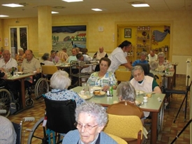 Ils sont pris en commun dans la salle à manger, sauf si l'état de santé ne le permet pas.