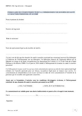 FORMULAIRE DE CONSENTEMENT ÉCRIT A L’HÉBERGEMENT DE DONNÉES DE SANTÉ