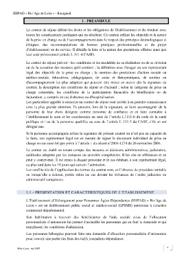 contrat; la description des conditions de séjour et d'accueil ; selon la catégorie de prise en