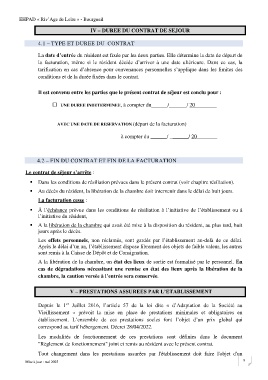 V – PRESTATIONS ASSUREES PAR L’ETABLISSEMENT
