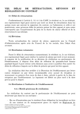 Toute actualisation du contrat de séjour, approuvée par le Conseil