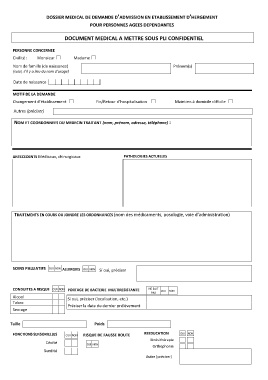 DOSSIER MEDICAL DE DEMANDE D’ADMISSION EN ETABLISSEMENT D’HERGEMENT
