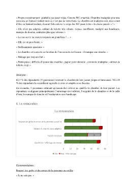 répondants soulignent principalement l’entartrage des toilettes, l’exigüité de la chambre et de la salle