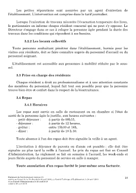 signalée au plus tard la veille à l’accueil. Le prix du repas est fixé en Conseil