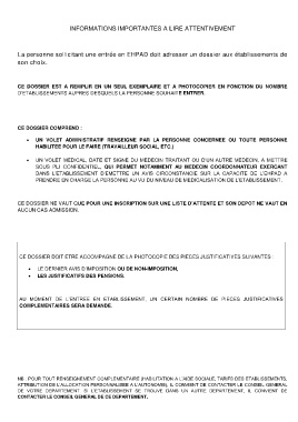 NB : POUR TOUT RENSEIGNEMENT COMPLEMENTAIRE (HABILITATION A L’AIDE SOCIALE, TARIFS DES ETABLISSEMENTS,