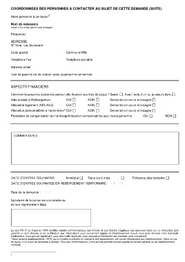 Aide sociale à l’hébergement OUI NON Demande en cours envisagée