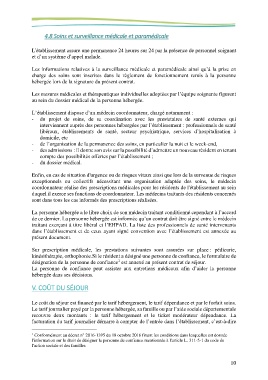 charge des soins sont inscrites dans le règlement de fonctionnement remis à la personne