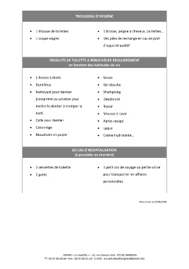 1 trousse de toilettes 1 brosse, peigne à cheveux, barrettes…