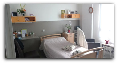 Chacune de nos chambres offre tout le confort nécessaire, en comprenant une salle de bain équipée (douche, wc, lavabo), un mobilier adapté (lit médicalisé à hauteur variable, chevet, adaptable, fauteuil confort, placard, penderie, coffre et TV) et un système d’appel malade pour garantir votre sécurité.