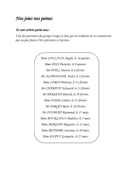 Une des personnes du groupe évoque le fait que les résidents ne se connaissent